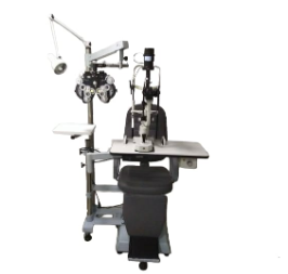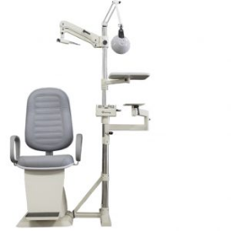 Conjunto cadeira e coluna com braço para lâmpada de fenda